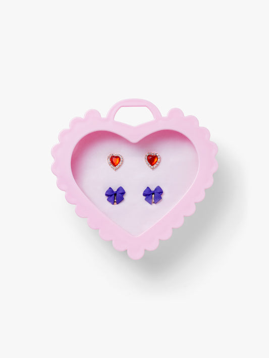 Clip-on Earrings 2 Pairs Heart & Bow Gift Box