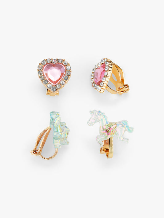 Clip-On Earrings 2 Pairs Unicorn & Heart Gift Box