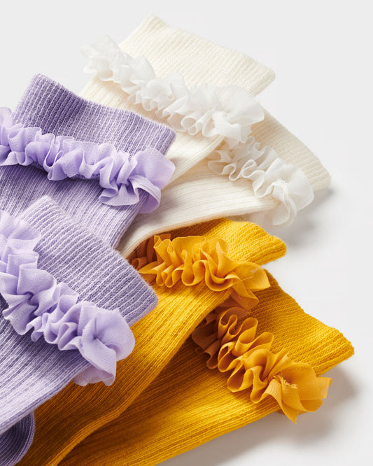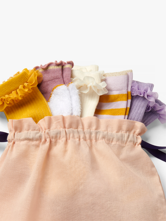 Pastel Frill And Stripe Cotton Socks 5pk Gift Set