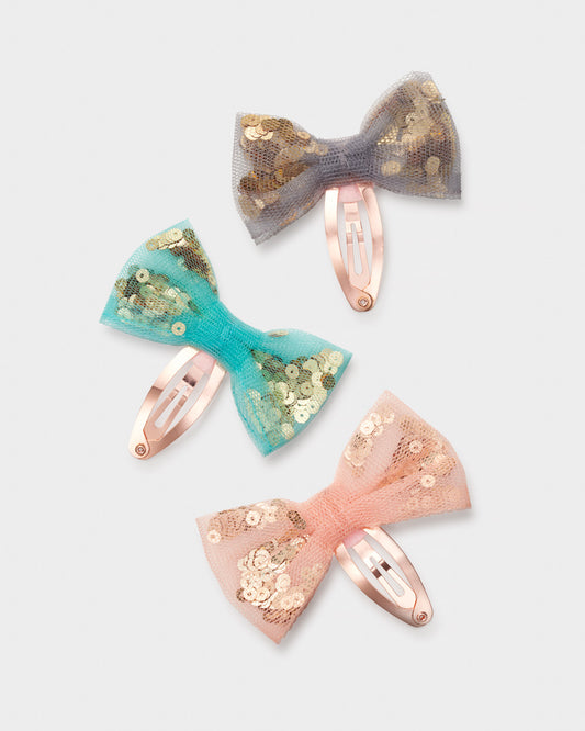 Sold outSequin Tulle Bow Hair Clips 3PK